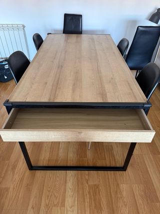Mesa comedor madera y metal con 6 sillas