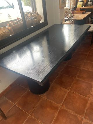 Mesa de comedor grande de madera negra.