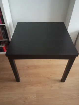 Mesa de comedor extensible grande. - Acabado en tonos oscuros - Amplia y con opción a extensible, nunca la he llevado a abrir, no sé cuánto puede llegar a medir. - Robusta, habría que desmontarla para trasportarla