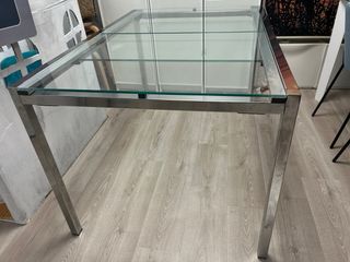 Mesa de comedor o auxiliar de Ikea con un diseño moderno y elegante. - Tablero de cristal transparente. - Estructura y patas de metal cromado.