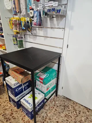 Mesa alta con estructura de metal y tablero de madera. - Diseño moderno y funcional. - Combina colores neutros para adaptarse a cualquier espacio. Esta nueva, la compré por error y no tengo espacio para ella.