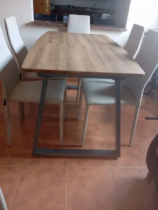 Mesa de comedor con un diseño moderno y robusto. Su superficie ampliable. - Fabricada en madera resistente. - se regalan sillas ( rascado por gatos ) 🫣