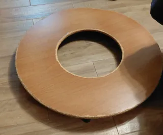 Mesa camilla de forma redonda, con cristal y tarima. Recoger en Montoro