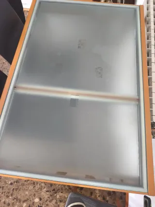 Mesa de comedor tiene algunas picadas como se ve en la foto, el crital esta muy bien