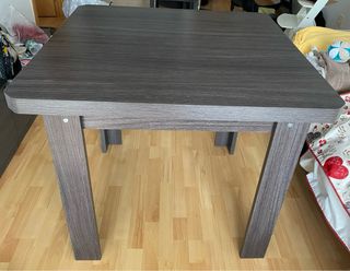 Mesa de comedor con un diseño moderno y funcional. Su acabado combina tonos grises, aportando calidez a cualquier espacio. - Acabado en madera con veta. - Patas robustas y estables. - Diseño extensible para mayor versatilidad. - Usada siempre con mantel, tiene alguna marca de uso (roces) en las patas. - Dimensiones: 90x90cm > extensible 180x90cm (se abre tipo libro) A recoger en Terrassa. ****DISPONIBLE A MEDIADOS FINALES DE ABRIL (NO ANTES)****