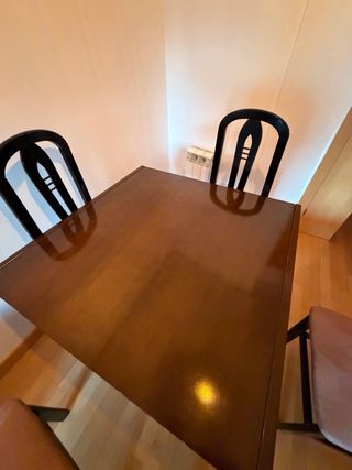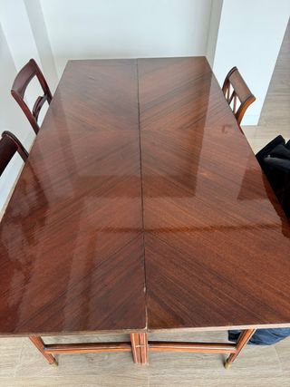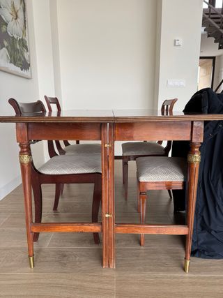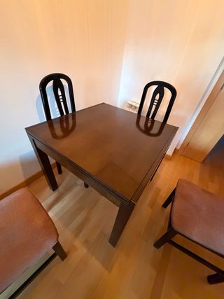 Conjunto de mesa de comedor con sillas. - Mesa extensible. - Acabado en madera oscura. para mas información contacte con el numero 633301062