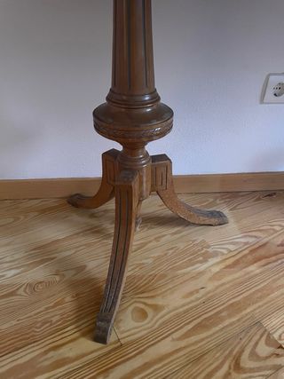 Mesa camilla redonda de madera.