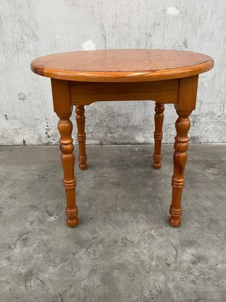 Mesa auxiliar redonda con un diseño clásico y patas torneadas de 80 cm de diametro - Tablero de madera con acabado natural. - Patas de madera torneada con detalles. - Ideal como mesa de rincón o mesita de noche.