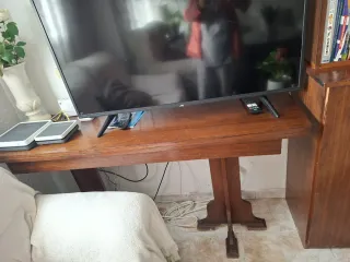 “Mesa antigua de finales del siglo XIX / principios del XX” Vendo preciosa mesa antigua de madera de gran calidad, muy sólida y bien conservada a pesar de los años. Es una pieza con mucho carácter, ideal para amantes de muebles vintage, decoración rústica o restauración. La madera es muy resistente y pesada, de las que ya no se fabrican hoy en día. Tiene ese encanto auténtico de los muebles antiguos que aporta personalidad a cualquier salón, comedor o casa rural. Perfecta para restauracion Disponibles tambien las sillas a juego, podria incluirlas en el precio, hay tambien otros muebles del mismo estilo en mi perfil.