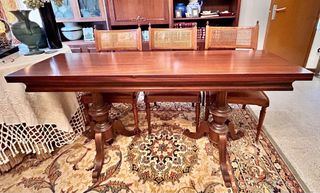 Mesa comedor extensible y sillas madera vintage