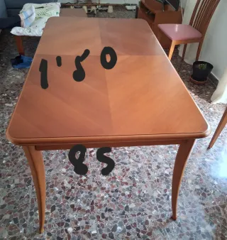 Elegante mesa de comedor vintage. Con marcas de uso pero no tiene fallos para su uso. Es extensible. Ha estado con nosotros muchos años y la cambiamos porque ha aumentado la familia y necesitamos una más grande. DISPONIBLE SOLO HASTA EL 5 DE ABRIL.