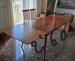 Se vende preciosa mesa comedor extensible mesa estilo vintage marca danesa de los años 60 diseñador Arne Homand Olsen y editada por MSE Mobler, hecha de madera maciza , edición limitada, la mesa está en perfecto estado como nueva muy bien conservada ningún tipo de desperfecto tal cual como se ve . Tiene 2 extensiones de 40cm cada una . Incluyen las 6 sillas que se ven en las photos , todo en excelente estado , las sillas también son de madera maciza , se puede ver sin compromiso . ( para recoger) 120 120 74