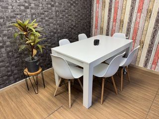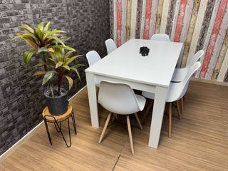 ¿Buscas un comedor moderno? Este set de mesa y seis sillas blancas de estilo nórdico es ideal. Completamente nuevo, se entrega en su embalaje original para garantizar un estado perfecto. Combina madera y blanco para crear un ambiente acogedor. Estructura estable y gran durabilidad. Una inversión inteligente para tu casa. ¡Consigue el estilo que buscas con este pack a estrenar! 📲 639*116*436 - Judith ☎️ ✅Pagos y envios a contra - rembolso ✅ ✅Envios de 1 a 4 dias. ✅ ✅Envio de factura. ✅ ✅Garantia de 2 años.✅ ✅Productos completamente Nuevos ✅ ☎️ Tienes dudas? , no dudes en comunicarte con nosotros, atendemos 24HRS.☎️