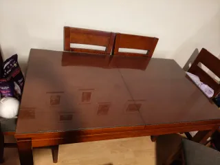 Mesa comedor madera y 4 sillas. CRISTAL incluido.