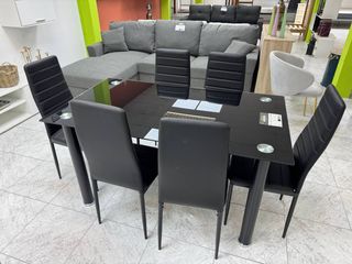 Mesa de Comedor + 6 Sillas Negras Diseño NUEVO
