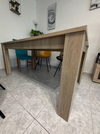 Vendo 6 sillas de comedor con la mesa a juego. Tanto las sillas como las mesas están en muy buen estado. La mesa sin extender mide 1,30 metros y es para 6 comensales y con el extensible mide 1,90 metros y da para 8 comensales.