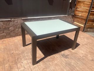 mesa comedor de cristal negro con el cuerpo de hierro lacado en gris. también vale para jardín. sólo mesa (no tiene sillas) mide 110 ancho/70 fondo/ 75 alto no envío. recoger en casa. 639621986