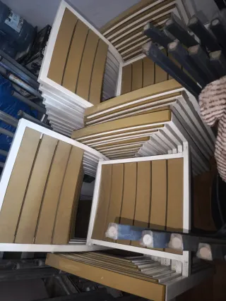 Conjunto de mesas y sillas con estructura de metal y detalles en madera. - Diseño moderno y funcional. - Ideal para comedores o terrazas. 25€ sillas y mesa sueltas 100€ el conjunto