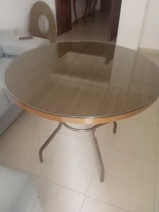 Mesa camilla redonda de 90cm con tarima para brasero y cristal superior. 50€ -2 Sillas de salon a juego. 40€ Se entregan en mano en Valverde de Leganés. Si te lo llevas todo se regala brasero eléctrico de dos resistencias.