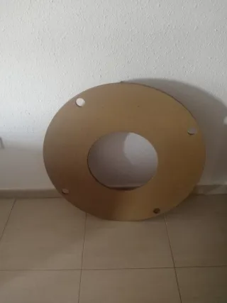 cristal redondo para mesa de un metro. mide noventa y nueve centímetros. presenta alguna raya que no se perciben bien en las fotos. Se regala a quien se lo lleve. el sombrero. de madera. formica. se recoge en parcela del corazón de jesús en horario de cinco y media. a seis y media qué es cuando estoy allí.