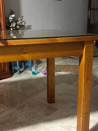 Mesa de comedor con superficie de cristal incluido y patas de madera. - se vende mesa y cristal a medida - Combina a la perfección con cualquier estilo de decoración. Solo venta en persona