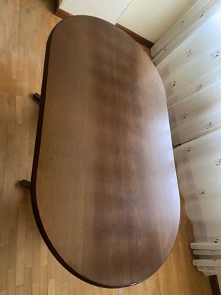 Mesa de comedor con diseño ovalado y extensible. Perfecta para adaptar a diferentes espacios. - Acabado en madera natural. Tiene marcas del uso. - Diseño ovalado. - Extensible para mayor capacidad. Abierta completamente tiene una longitud de 2,40m (40cm por cada lado)