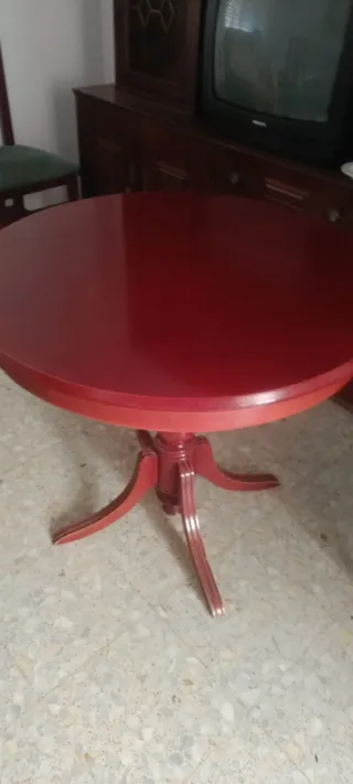 Es un conjunto de estilo clásico/rústico, con patas torneadas muy robustas. Nada de aglomerado, es madera "de la de antes", pesada y estable, hecha para durar toda la vida. Juego de mesa y 4 sillas. Estado: Estructura: Impecable. La mesa no cojea y las sillas son muy firmes. Estética: El color es pino miel original. Tiene marcas de uso superficiales y desgaste en el barniz en algún borde (ver fotos), algo normal por el uso. Ideal para: Casas de campo, alquileres o txokos que necesiten muebles de batalla.