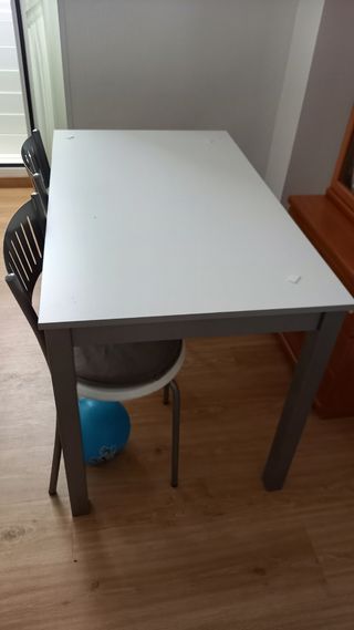 Mesa de 112x66cm y 2 sillas. Lo compre en merkamuebles. Regalo cojines de las sillas.