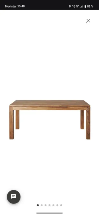 Mesa de comedor de 180x90 robusta y elegante, con un diseño rústico que aporta calidez a cualquier espacio.Su precio original es de 500€ - Fabricada en madera maciza. - Acabado natural que resalta la veta de la madera. Posibilidad de sillas en gris con patas de madera también disponible en venta .