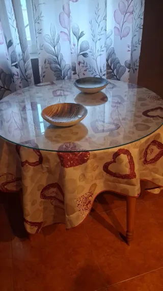 Mesa camilla redonda con sus 4 sillas y aparejador