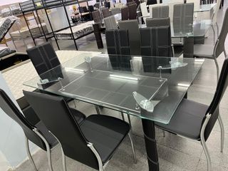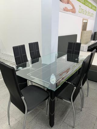 Nueva mesa de cristal + 6 sillas a juego de polipiel negras Hacemos envios a domicilio Pago contra reembolso