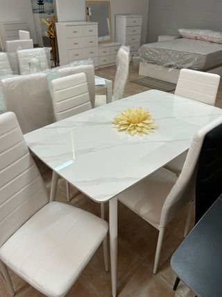 para saber mas escribe a 697*204*421- maria Pagas al recibirlo! 📦 Vienen en caja nuevo. ☎ ATENDEMOS WHATSAPP 24H ✅Totalmente nuevo y con 2 años de garantia Vendo elegante conjunto de comedor compuesto por una mesa de diseño minimalista y 6 sillas a juego. Es perfecto para darle un toque sofisticado y contemporáneo a cualquier salón o zona de comedor.