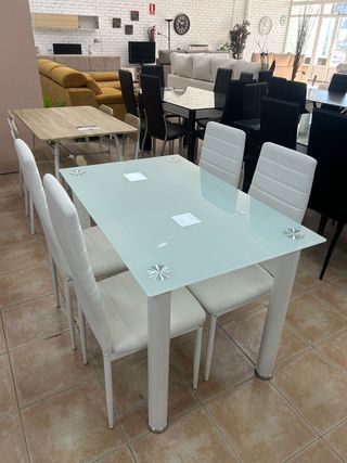 💥!LIQUIDACION DE MESA DE CRISTAL + 6 SILLAS!💥 Elegante conjunto de mesa y 6 sillas de comedor, La mesa es de cristal templado la cual garantiza capacidad de resistencia, además de un elegante diseño. Su set de 6 sillas están estructuradas por tapizado polipiel acolchado y estructura metálica. - Medidas: 140x80cm - Colores: negro, blanco, gris - Envío a domicilio (consulte tarifas) - Pago contra reembolso - Garantía de 3 años 💥!NO ESPERAS MAS PARA TENER TU NUEVA MESA DE CRISTAL TEMPLADO CON 6 SILLAS !💥 📲*670222602*📲⭐JHON!! 💥!Por que la belleza esta en los detalles !💥