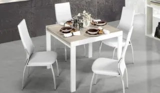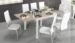 Mesa de comedor o salón de gran tamaño, con opción extensible para adaptarla a tus necesidades. - Tablero con acabado en madera. - Patas en color blanco. Medidas: ancho 90, largo 160, alto 75 Extensible hasta 205.
