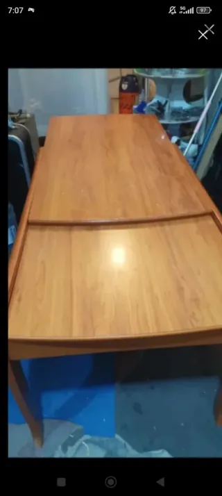 Son de cerezo y nogal La mesa mide 160×90 extensible a 2 metros. Con sillas incluidas. Nunca se ha llegado a usar.