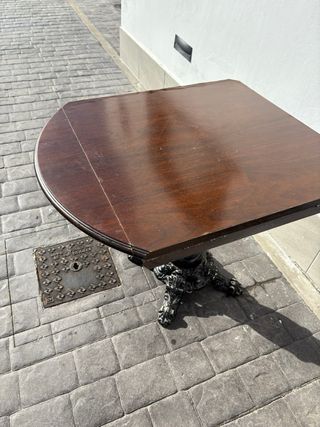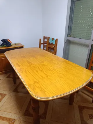 Mesa de madera maciza con las Patas torneadas de 160x90, metida en un almacen sin estrenar, el unico fallo que tiene es el golpe que tiene en un lado