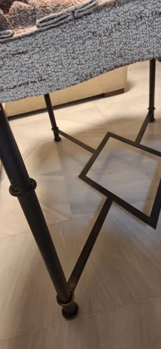 Mesa de comedor hecha en madera maciza de mango de Sklum. Patas metálicas en cruz en una sola pieza. Diseño robusto y duradero. Sólo ha estado montada unas semanas, no se ha usado. Sillas no incluidas. 1'90cm de largo y 90cm de ancho. Se entrega en su caja con su embalaje. Podría incluirse el transporte. Armario sofa sillas casa jardín chaiselong espejo lampara