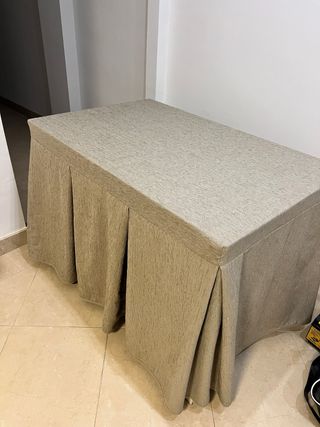 Ropa de camilla de tela en tonos beige y marrón. Ideal para cubrir y decorar. - Medidas: 110x70 cm. Alto 73 - Diseño con pliegues. No se ha usado practicamente.