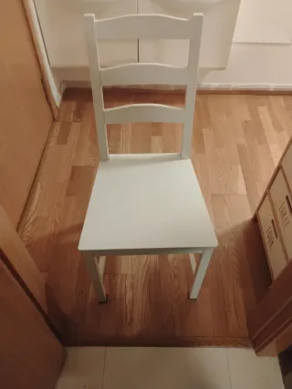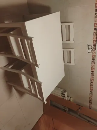 Conjunto de mesa y cuatro sillas de madera en color blanco. - Diseño moderno y funcional. - Ideal para comedor o cocina. - se hacen envíos. - con instrucciones de montaje.