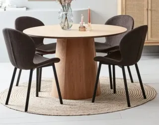 Elegante mesa de comedor redonda con un acabado de cerezo. Su diseño se adapta a diferentes estilos de decoración. - Tablero de madera. - Base robusta.