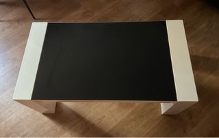 A recoger en Illescas Mesa de salón con un diseño moderno y elegante. Mesa ligera. Originalmente era blanca. Está vinilada en madera. Tiene uso pero está bastante bien de ahí su precio