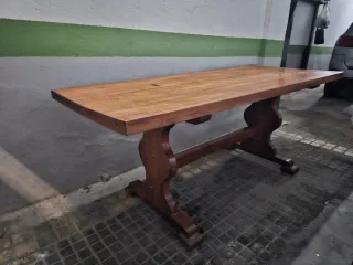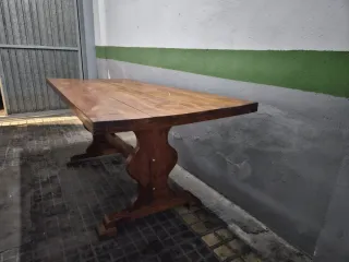 Mesa de comedor de madera maciza de cerezo. Su diseño rústico y robusto la hace ideal para cualquier hogar. - Tablero de madera maciza. - Patas de diseño clásico.