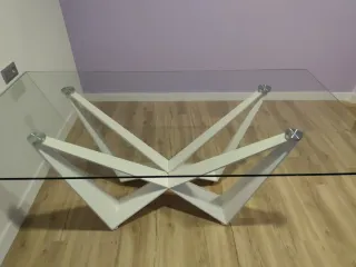 Elegante mesa con superficie de cristal y base de metal. - Diseño moderno y minimalista. - Combina a la perfección con cualquier decoración.
