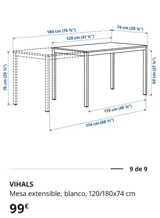Mesa de cocina extensible. Extendida mide 156 cm