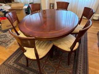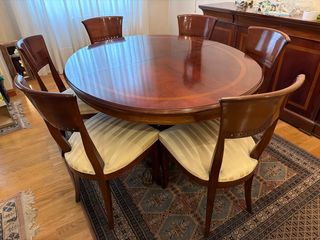 Mesa redonda extensible y 6 sillas comedor madera