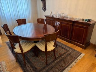 Mesa comedor extensible, 6 sillas y aparador