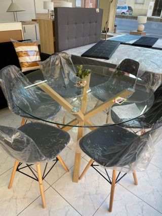 Mesa de comedor cristal y 4 sillas