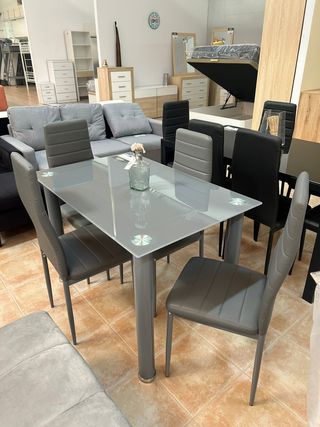 Mesa de cristal + 6 sillas ¡NUEVAS!
