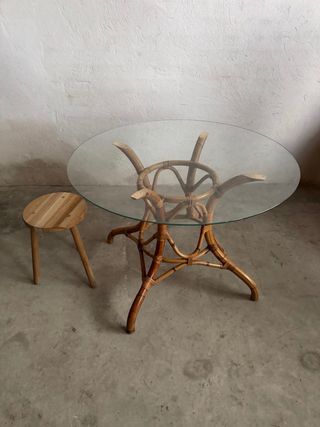 Mesa redonda de ratán y cristal