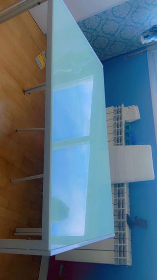 Mesa grande de acero inoxidable con cristal negro templado. Medidas: • Largo: 160 cm • Ancho: 90 cm • Altura: 76 cm Estructura muy sólida de acero inoxidable y tablero de cristal negro grueso. Ideal como mesa de comedor, mesa de oficina o para estudio. Está en buen estado general, Muy resistente y estable. Se vende por cambio de mobiliario. Recogida en persona. Precio algo negociable. - Diseño moderno y elegante. - Patas robustas de metal.